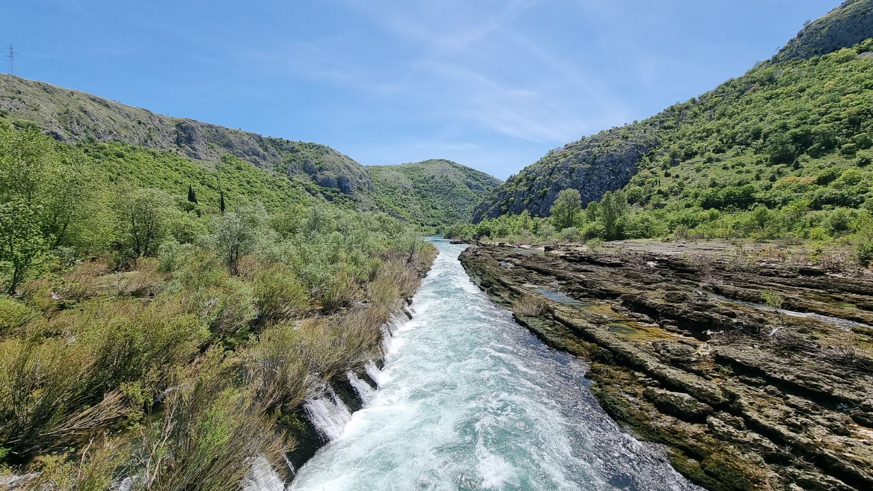 Krajvica watervallen, een van de highlights van Hercegovina; ; In normale tijden is het daar helaas vreselijk druk met bustoeristen uit Kroatie. Nu stonden er maar een paar touringcars en enkele personenauto’s. Tja dat is een van de voordelen in Coronatijd.