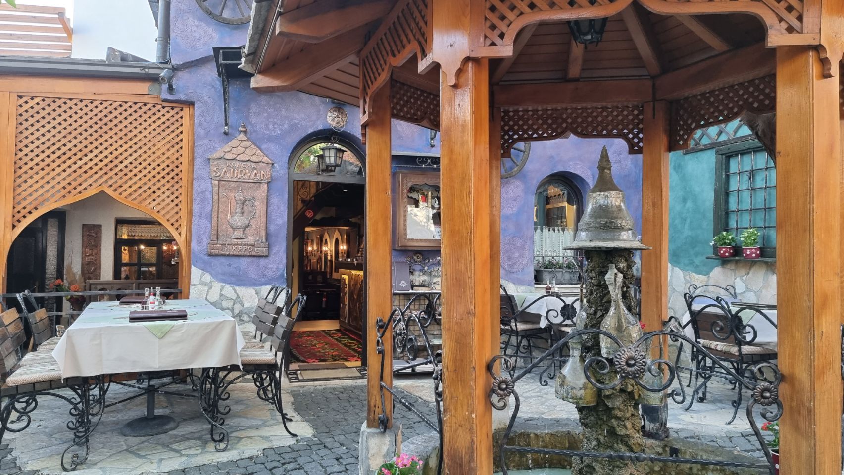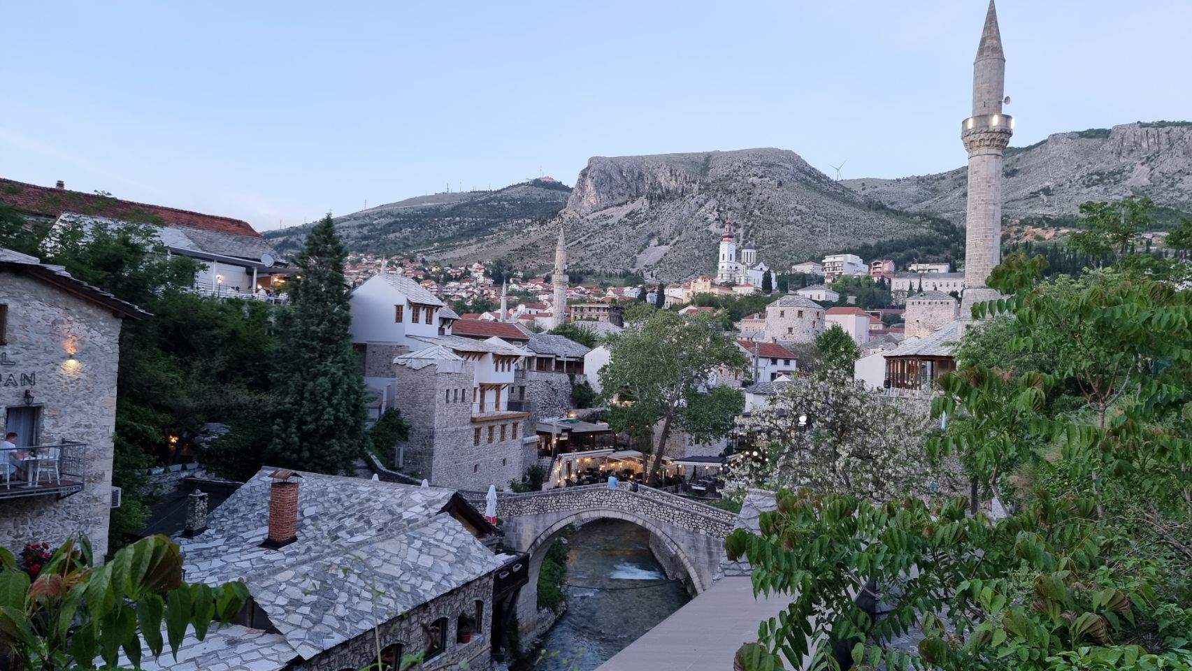 Gegeten in restaurant Sadrvan voor 49 mark (€25), kalfsstoofpotje en Palatcinka (pannekoekjes met ijs) als dessert. We hebben hier in Mostar voor 4 nachten een appartement met terrasje voor nog geen €100 totaal. Ontbijt doen we zelf, Konzum supermarkt op 10 min loopafstand. Morgen Free Walking Tour en meer over deze mooie plaats.😃