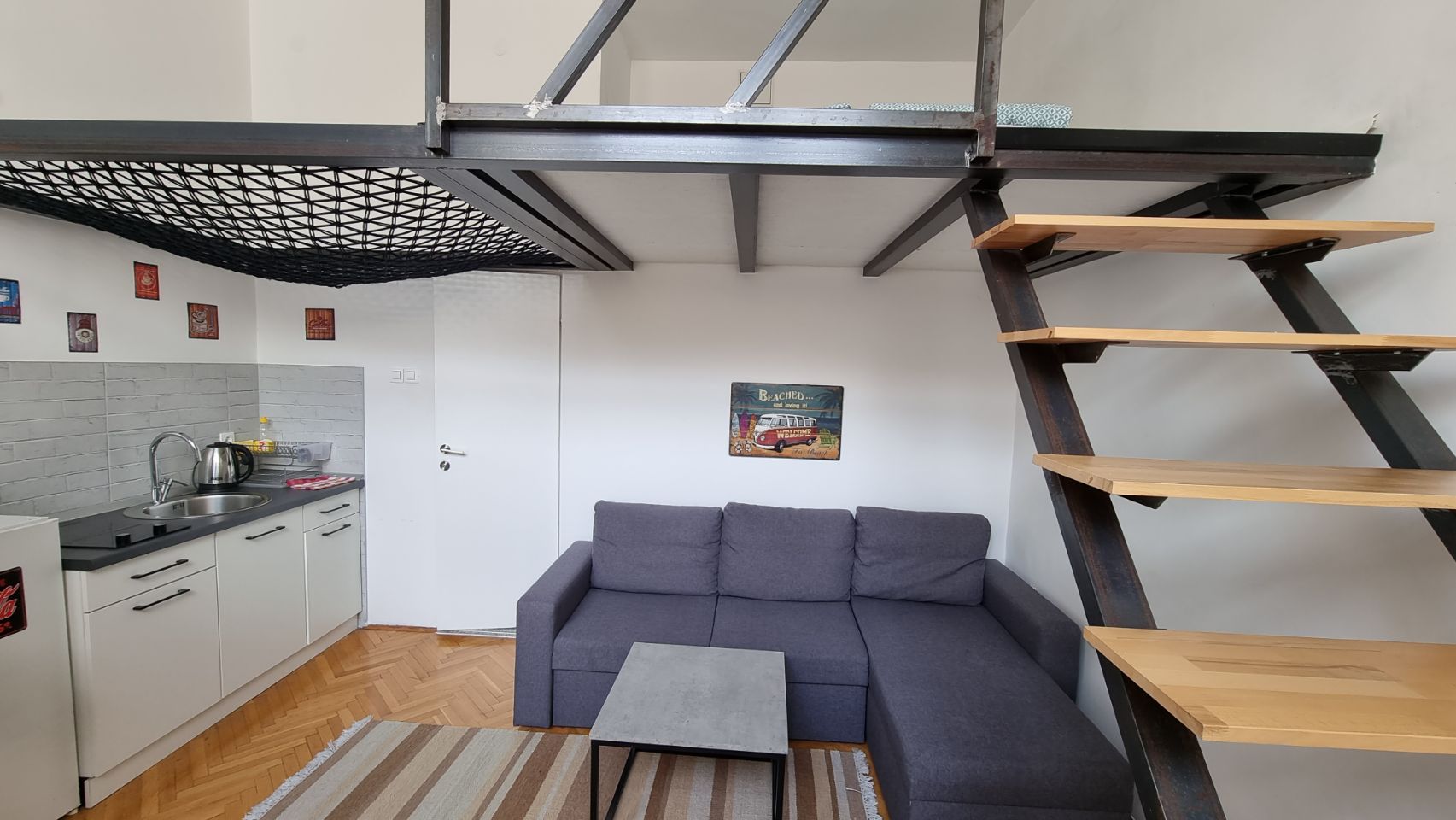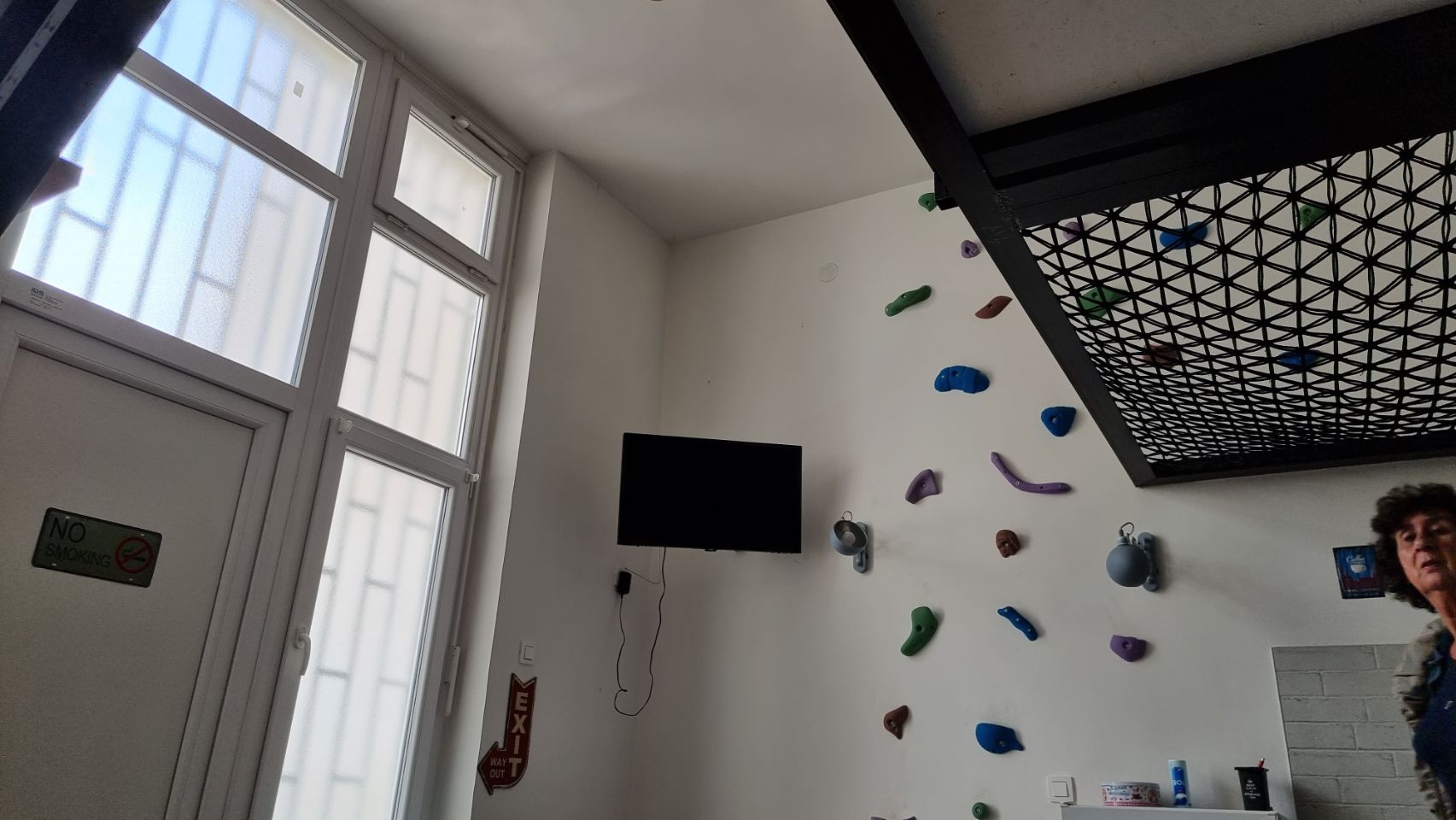 In ons appartement Altitude Loft kun je ook via de klimmuur naar ons bed. €80 voor drie nachten. Prima gelegen aan de rand van de Ottomaanse wijk die vanouds het toeristische centrum is.