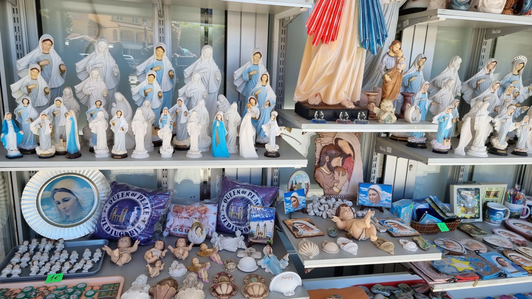 Dagtocht naar > Medjugorje ; Pelgrimsoord, meer dan 1 miljoen bezoekers per jaar. Nu bijna niemand. Wij konden de Maria’s verschijningsplek niet vinden. Google heeft het verkeerd aangegeven en bewegwijzering ontbreekt. Verder stelt het plaatsje niet veel voor met de gebruikelijke religieuze kitsch winkeltjes.