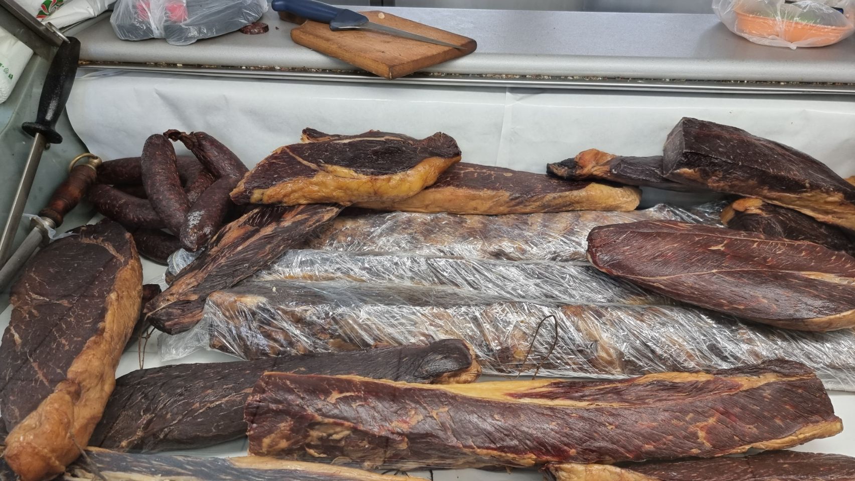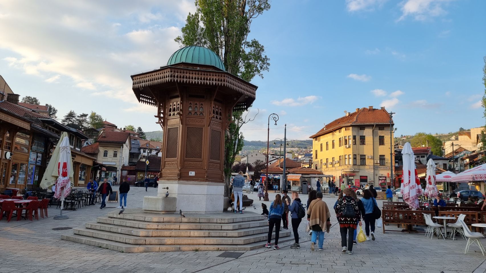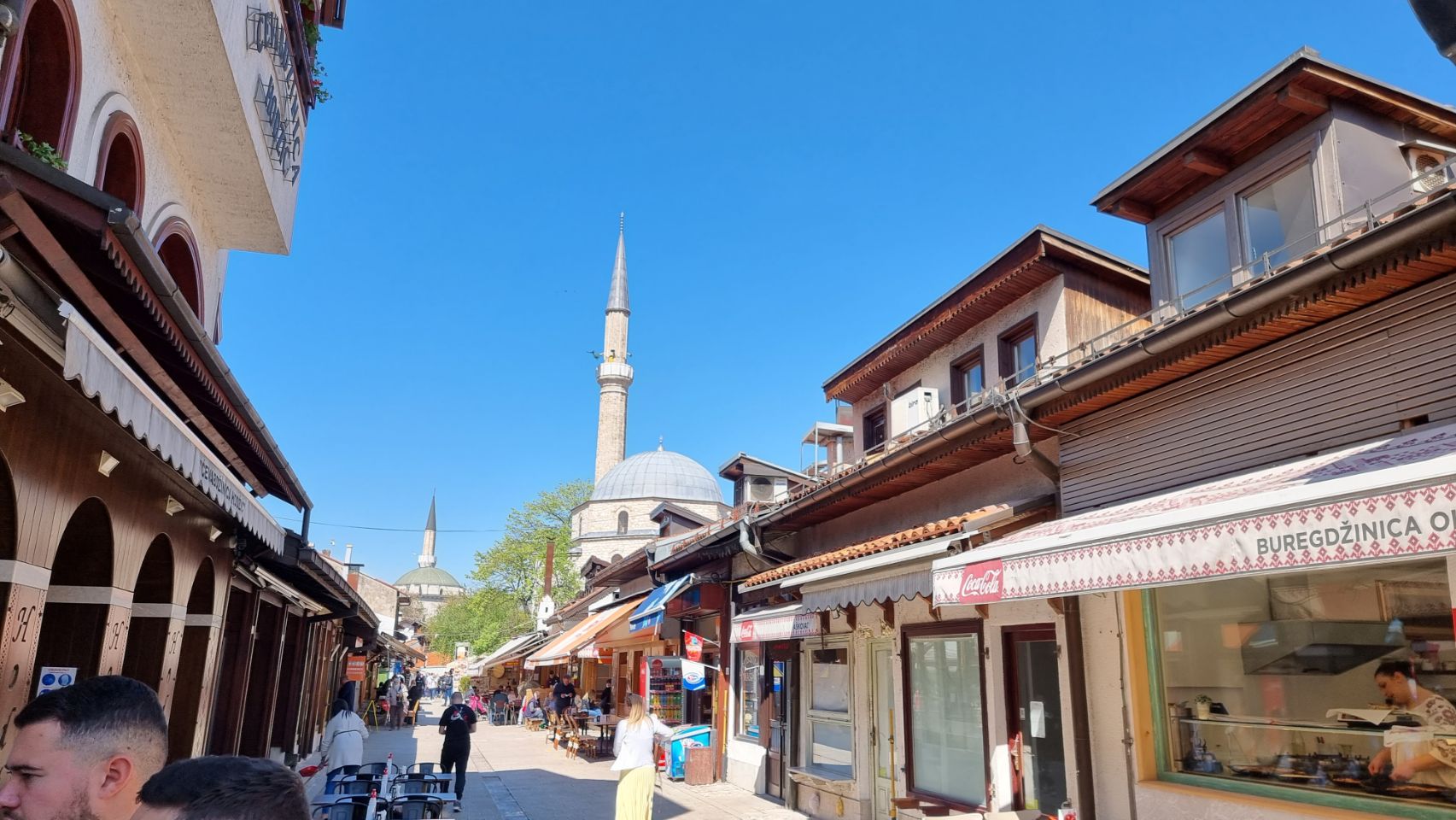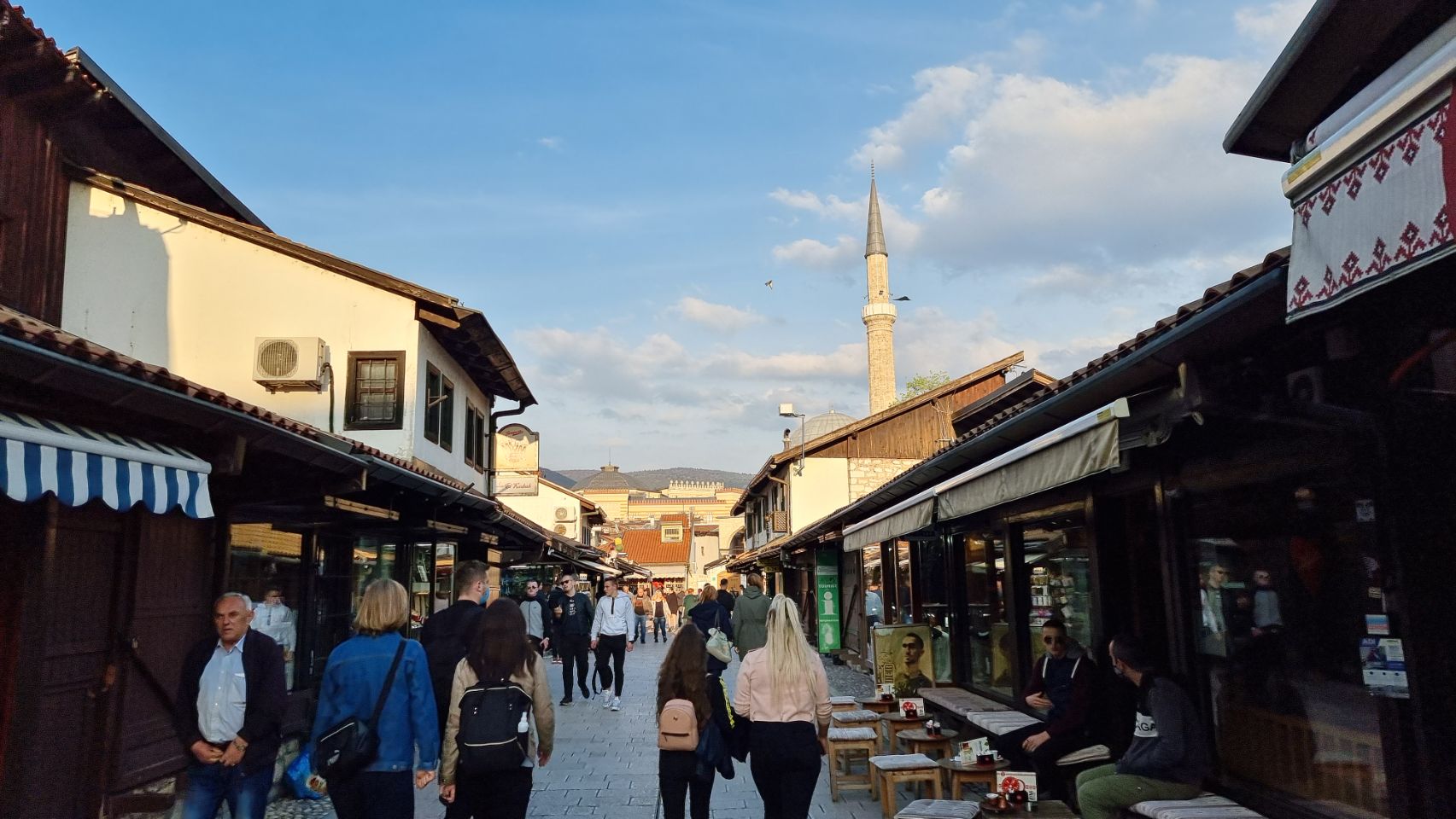 Eerste wandeling en eten. Buiten ging het nog net qua temperatuur. Gezellige Turkse wijk. Bosnië bestaat grofweg voor 40% uit Bosniakken, meest seculiere moslims, 40% orthodox katholieke Serviers en 20% katholieke Kroaten Gegeten voor 34 KM (Konvertibele Mark) = €17 . Ik neem de oud Joegoslavische klassieker Cevapcici met Shopska salade.