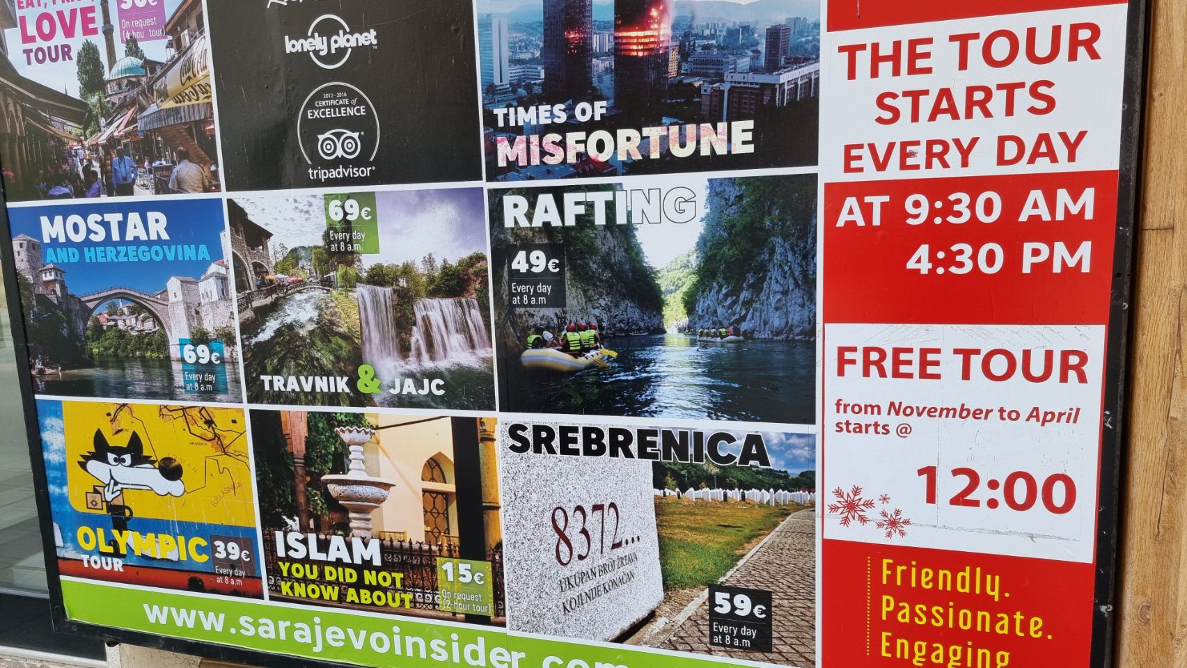 Vanmorgen een “War” tour gedaan met gids. Heel interessant. Overblijfselen van de olympische winterspelen 1984 en plekken die een belangrijke rol speelden in de burgeroorlog 1992-1995.