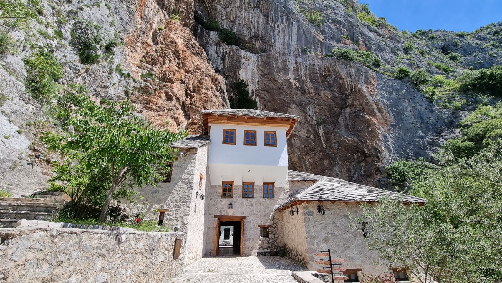 Blagaij; het klooster van de Derwish aan een machtige rotswand gelegen; een van de hoogtepunten van de trip.