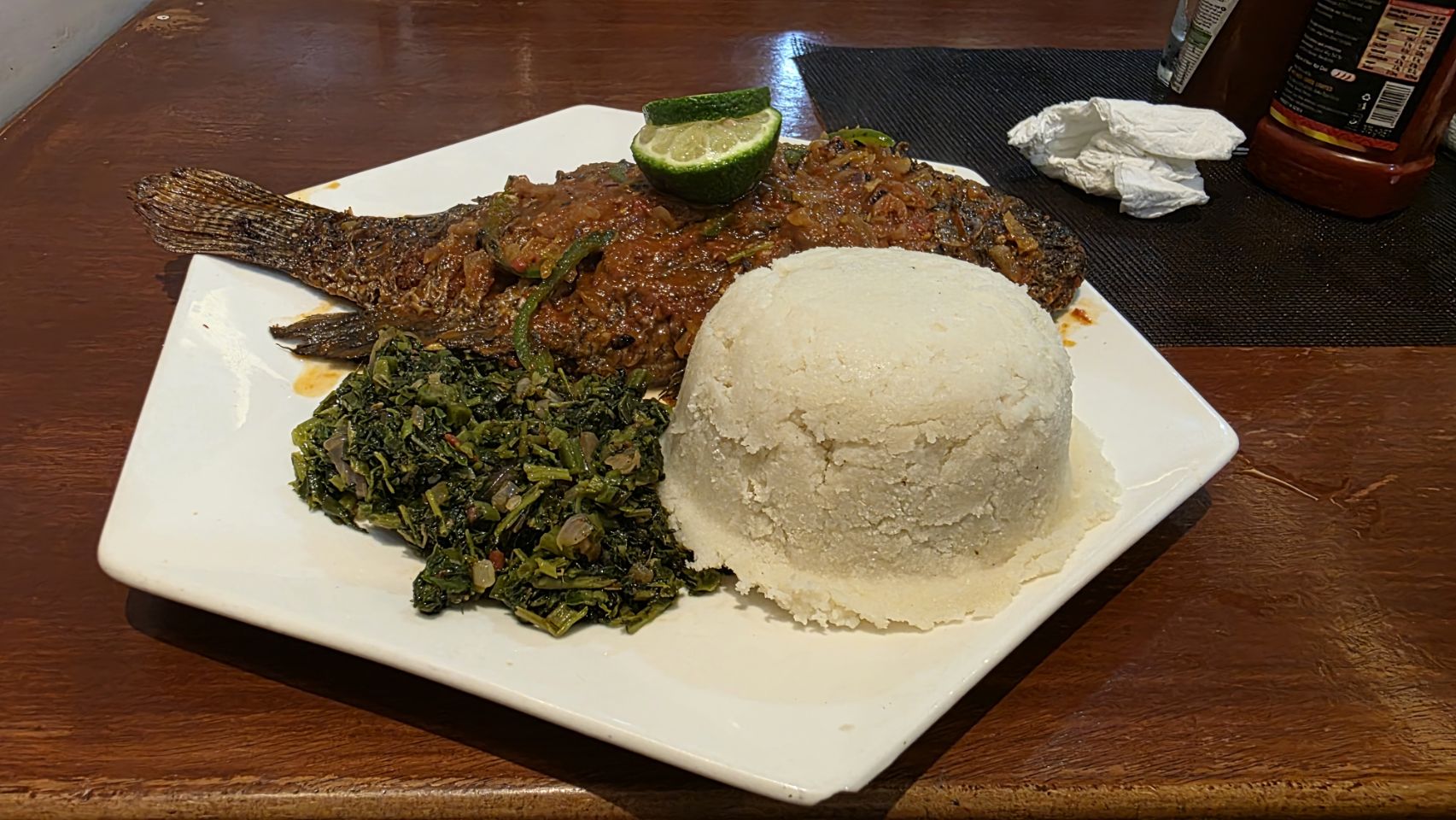 Restaurant; 2x standaardmaaltijd + 4 halve liters Tusker bier €17 !