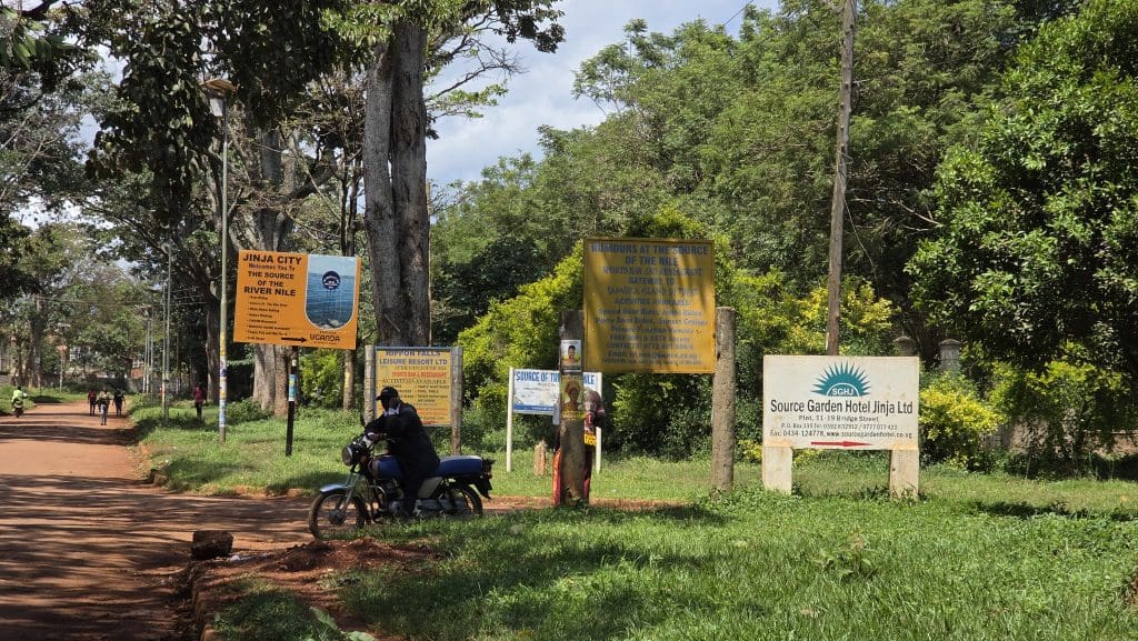 Een taxi geregeld via het hotel die ons voor 8500 Shilling (ca €58) naar Busia Border wil brengen Dat is ruim 100km. De rit verliep voorspoedig. De grensovergang verliep ook snel en toen hebben we een toilet gezocht. Moeilijk. We vonden een piepklein eetdrinktentje met een buiten wc . We betaalden €0.50 voor 2 Pepsi Cola😄 Daarna opzoek naar een geldautomaat. We liepen langs een giga rij vrachtwagens en gelukkig zagen we een ATM. Hij werkte ook en pinden 500.000 Ugandese Shilling (= €125) Vervolgens stopte er een Bushtaxi busje voor onze neus en konden wij voor 40.000 met z’n tweeën naast de chauffeur meerijden naar Jinja. De beste plek maar na een uur kreeg ik toch een beetje kramp. Gelukkig duurde de rit maar ruim twee uur en we zijn nu bij Wilson 30 Guesthouse. Een witte (dat was even schrikken na 10 dagen praktisch geen blanken gezien te hebben) enclave in dit land