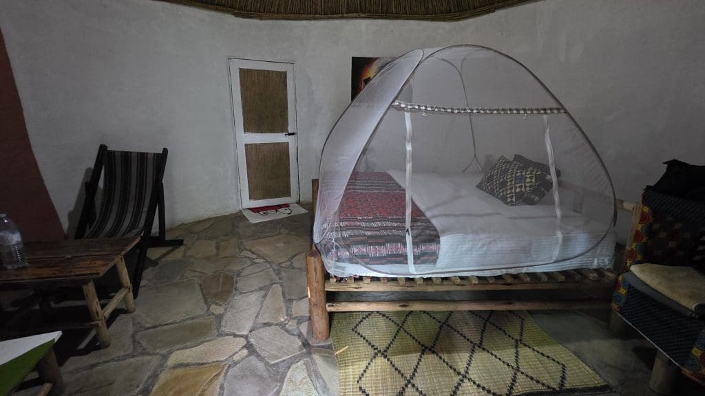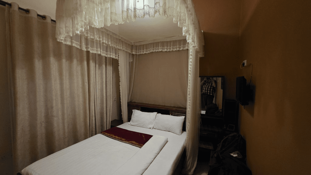 Na opnieuw een taxirit met een lesauto😂 een busrit in een midibus die steeds voller werd met een moeder met baby aan de borst naast mij en tenslotte een taxirit met een chauffeur die ik heb mogen navigeren naar deze luxe uberhippe club met een goedkope maar prima kamer en een erg goed restaurant 😄